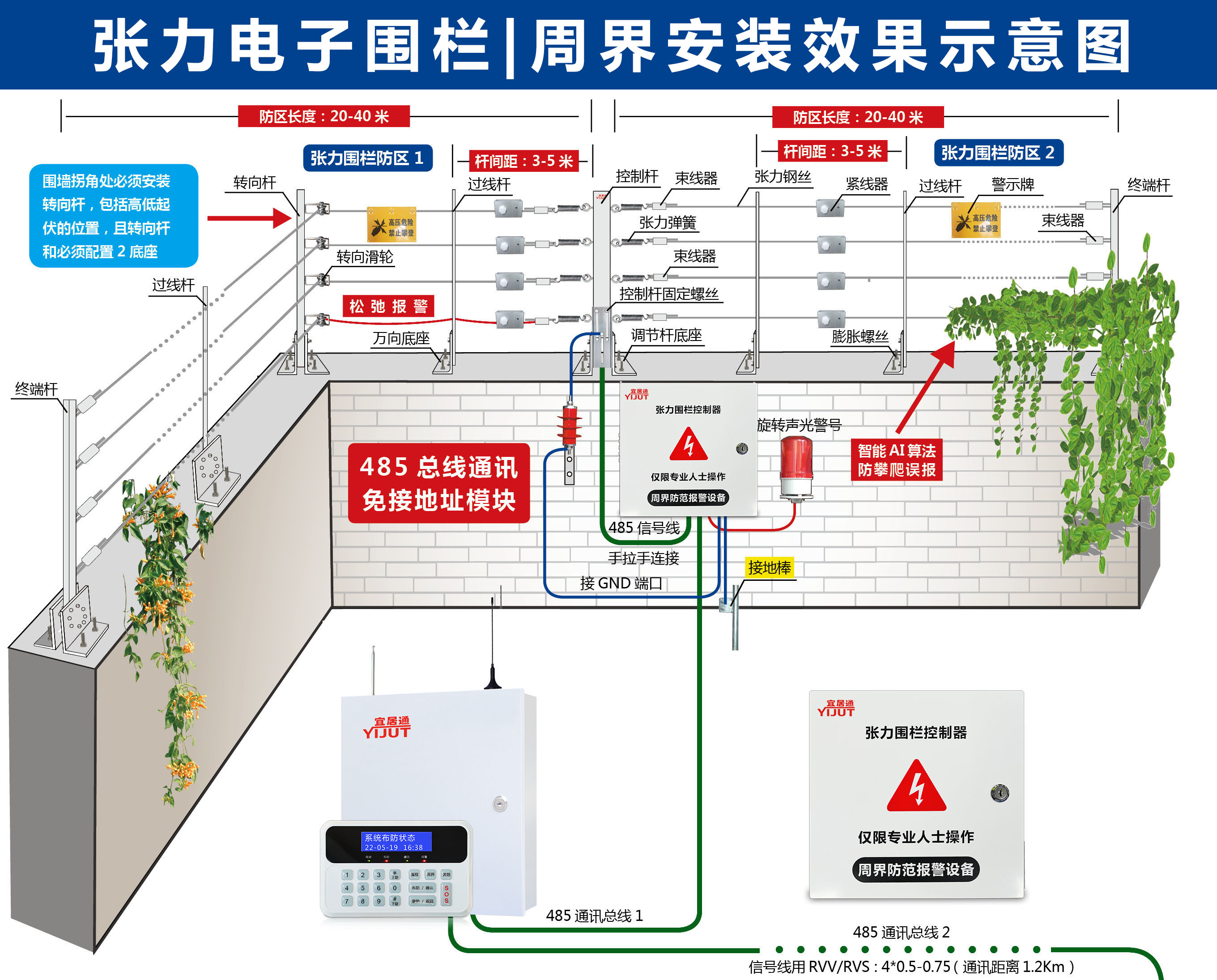 線制多樣化:可控制單/雙防區(qū),前端圍欄分別可接4線、6線、8線