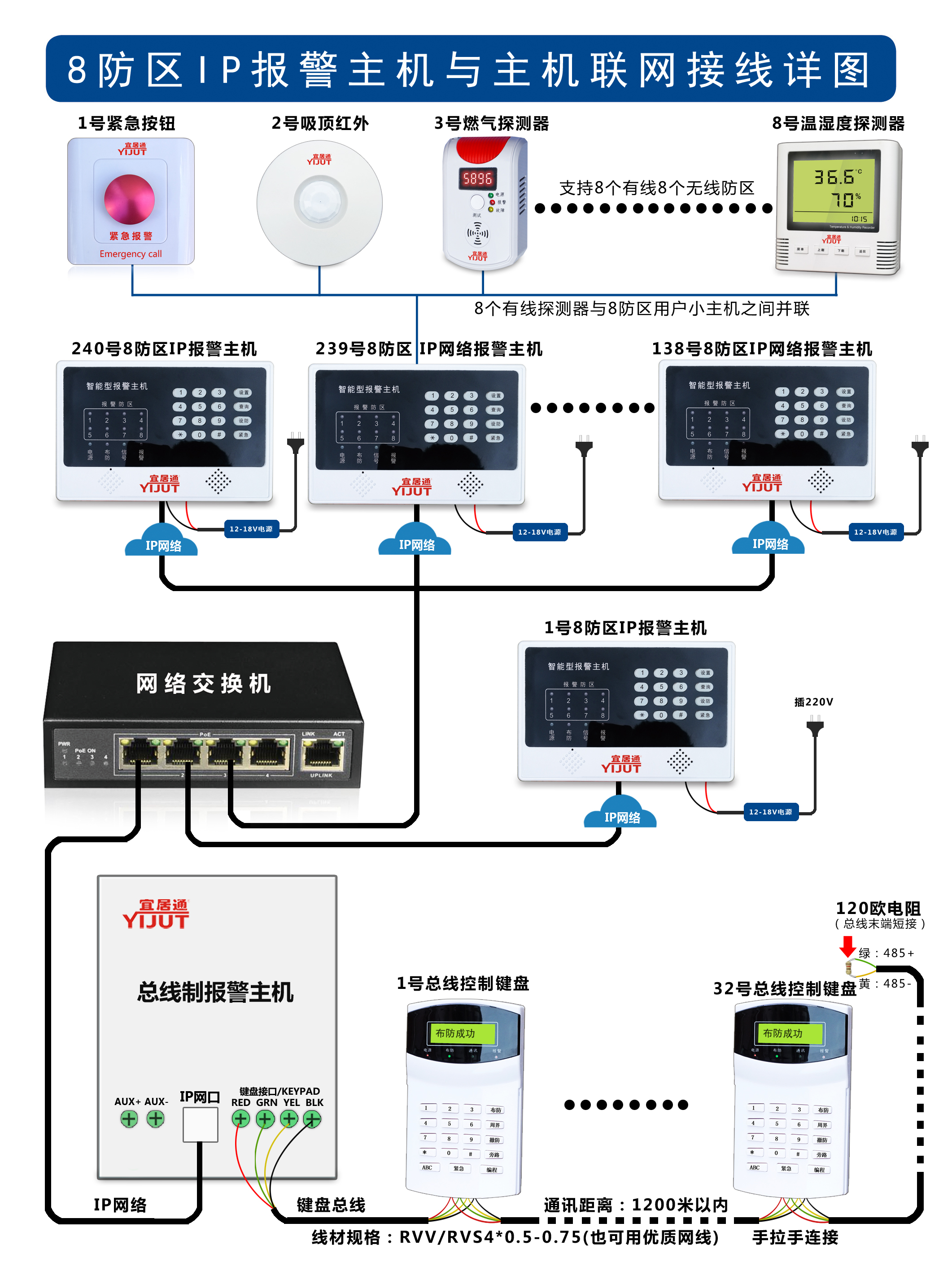 兼容性 | 可與宜居通總線網(wǎng)絡(luò)報警主機配套使用 |