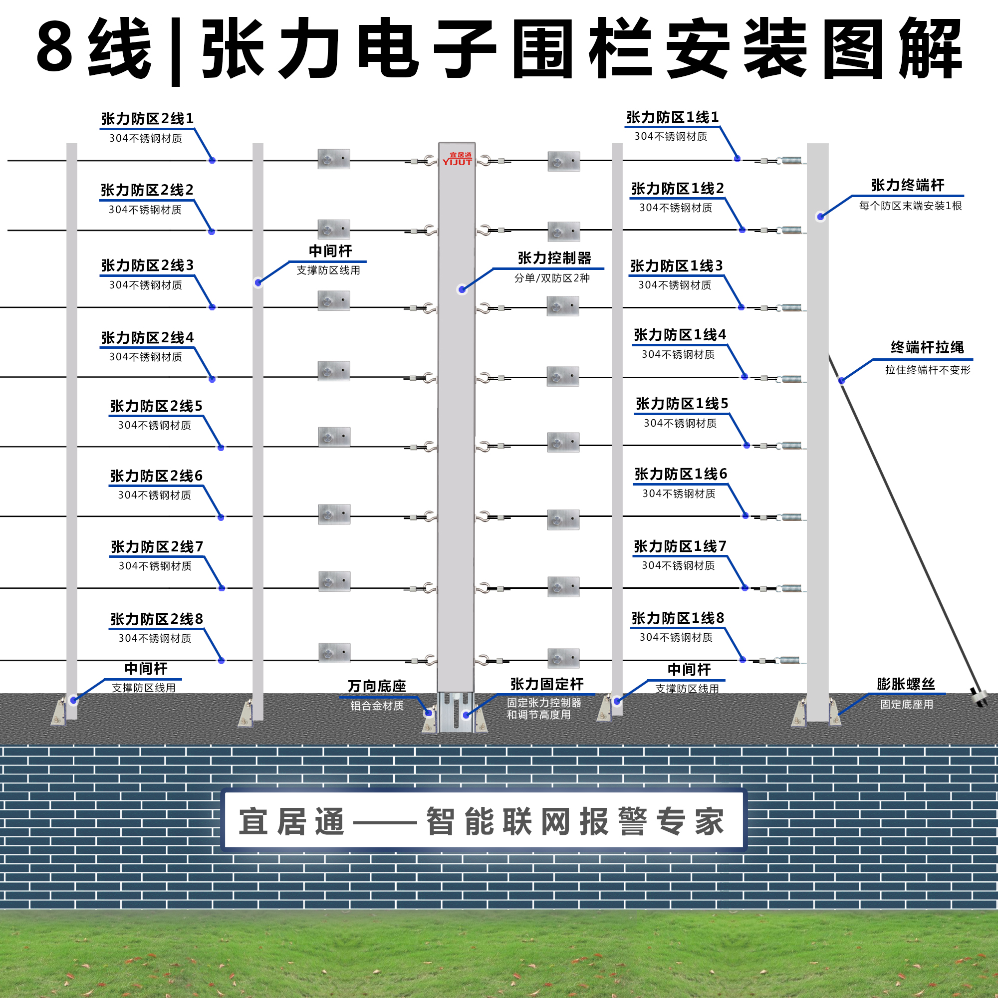 線制多樣化:可控制單/雙防區(qū),前端圍欄分別可接4線、6線、8線