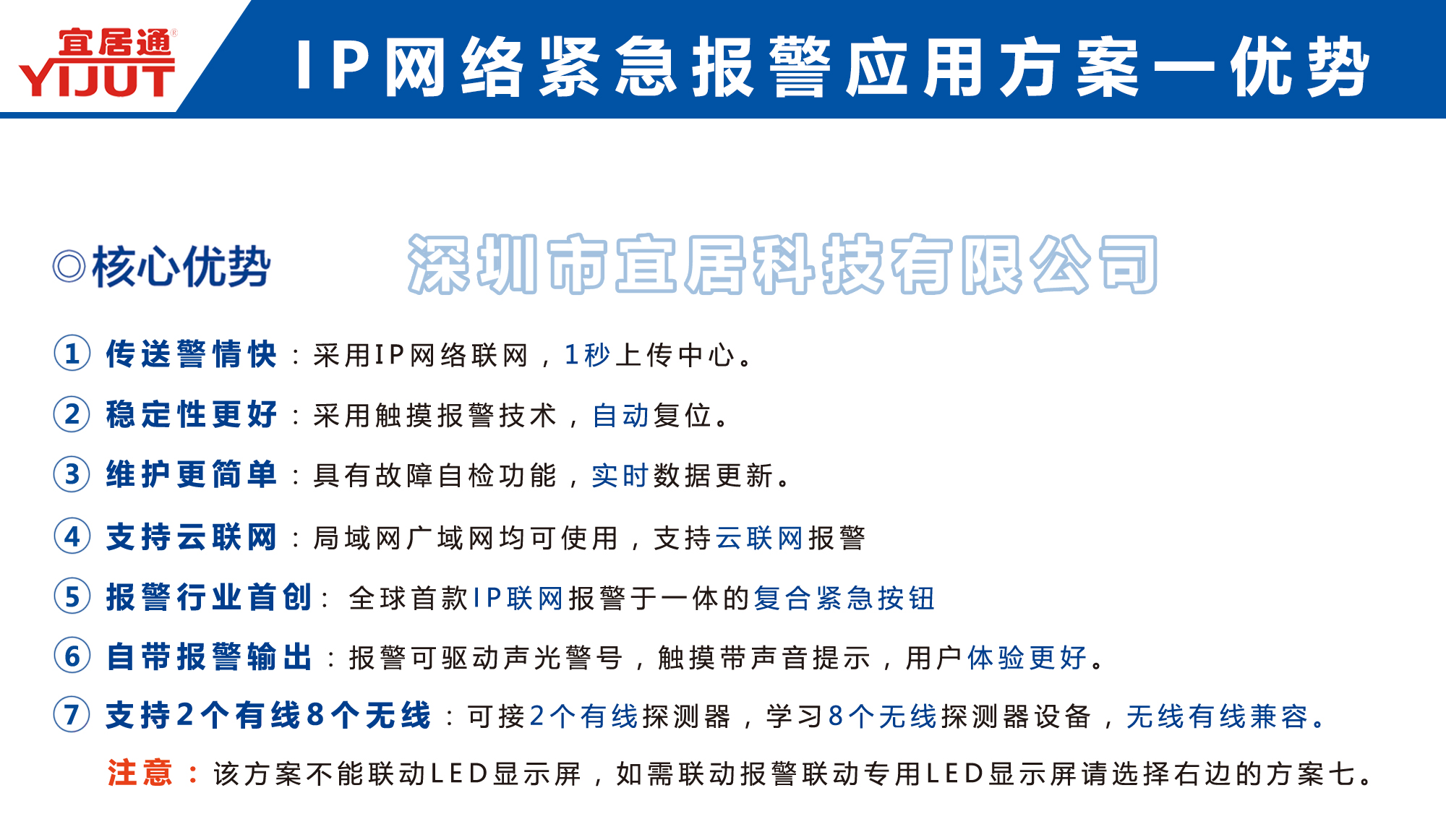 注意:以上IP網(wǎng)絡(luò)緊急報(bào)警系統(tǒng)應(yīng)用方案圖只適用于宜居通聯(lián)網(wǎng)接警平臺(tái),其他廠(chǎng)家的IP網(wǎng)絡(luò)緊急報(bào)警系統(tǒng)不支持。