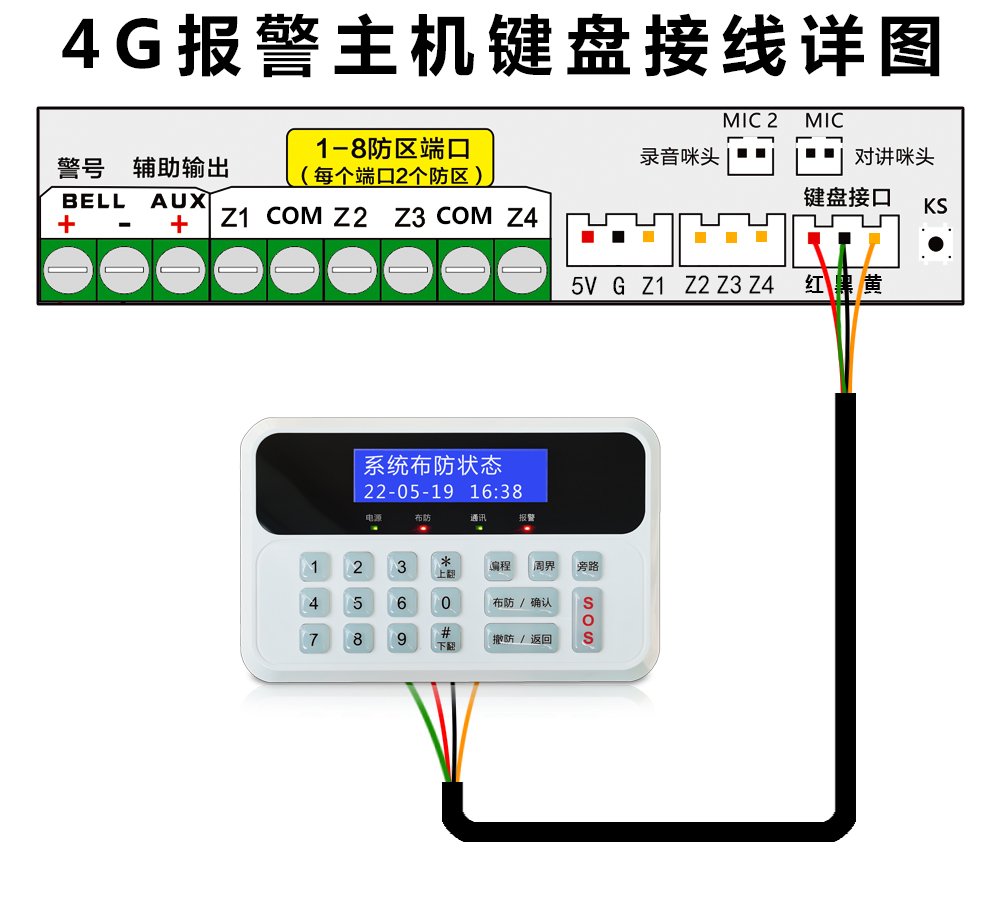 SS-7110G4為宜居通4路分線制報警主機,該報警主機具有4個有線8個無線防區(qū)功能,采用4G全網(wǎng)通通訊方式,移動,電信,聯(lián)通均可支持,可接入紅外、門磁、對射、光柵、按鈕、溫濕度等各種開關(guān)量有線探測器,也可以配置各種無線探測器,報警后可通過4G網(wǎng)絡(luò)上傳到110聯(lián)網(wǎng)接警中心平臺,也可以GPRS流量上傳云平臺,可手機電話和短信接警管理和反向布防、撤防控制,支持LED鍵盤和LCD中文液晶鍵盤編程設(shè)置和管理,學(xué)習(xí)探測器設(shè)置用戶電話號碼可全程語音播報提示,報警后也自動語音播報提示具體某個防區(qū)報警信息。