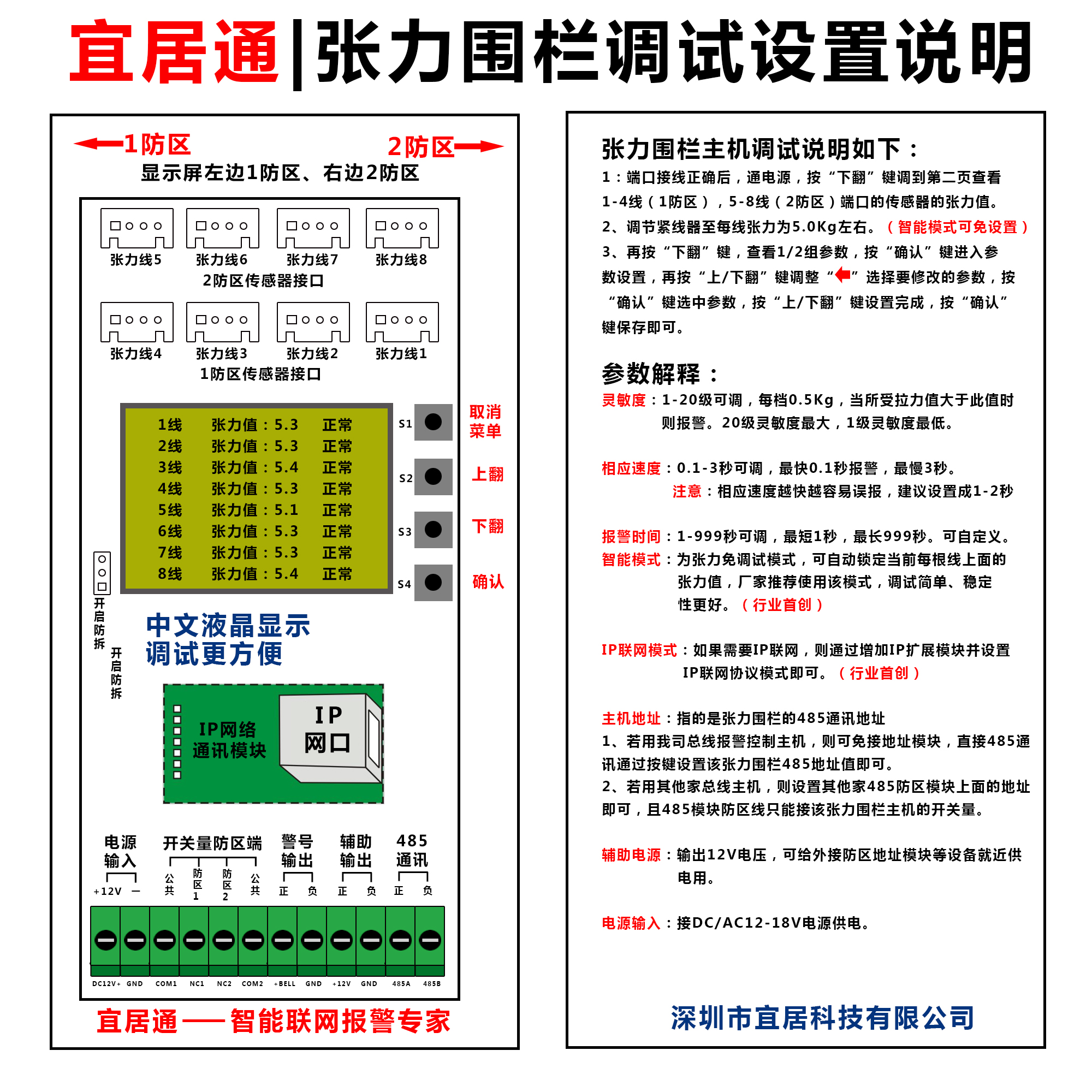 線制多樣化:可控制單/雙防區(qū),前端圍欄分別可接4線、6線、8線