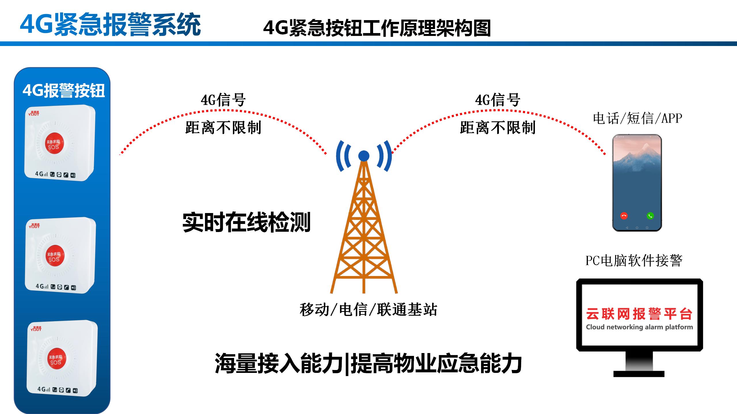 4G無線緊急報(bào)警按鈕聯(lián)網(wǎng)應(yīng)用方案如下: