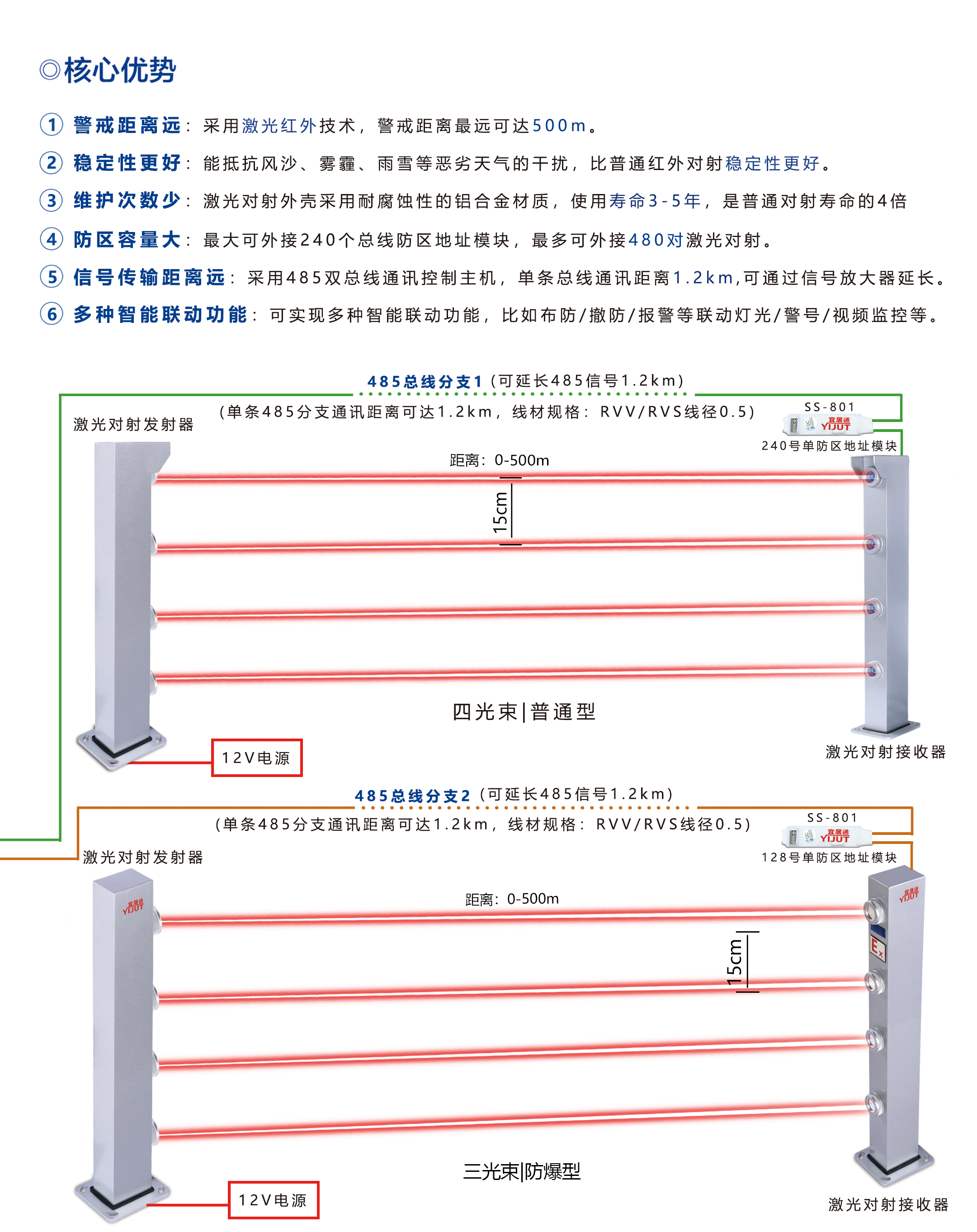 (三)、單光束激光對射設(shè)防配置靈活,防范精度高