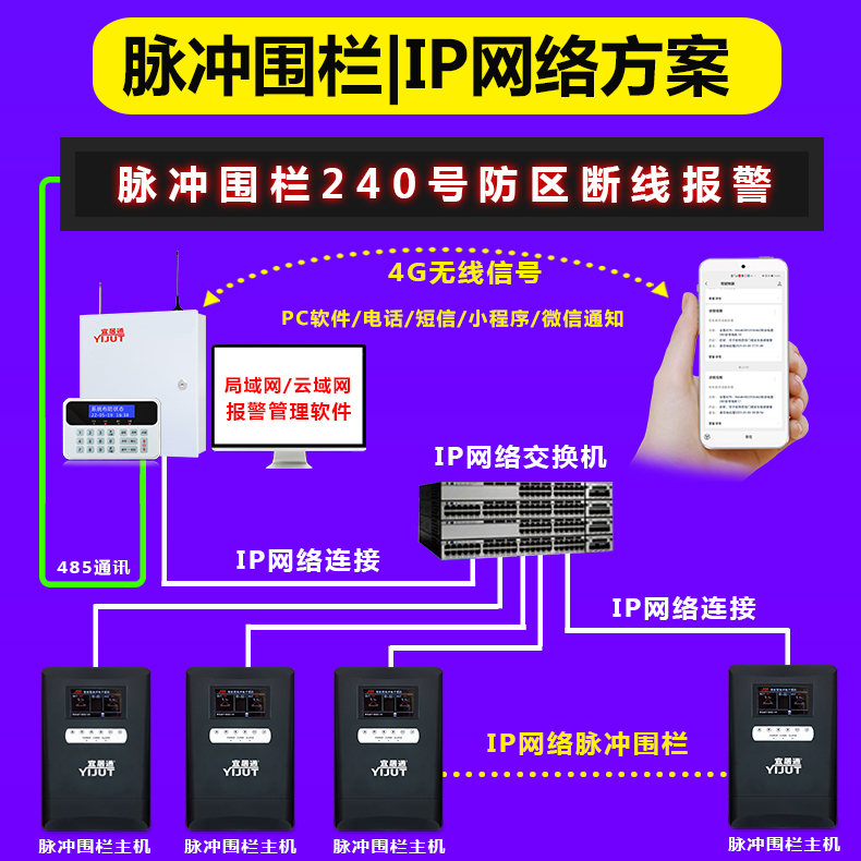 產(chǎn)品名稱 | 宜居通單防區(qū)IP網(wǎng)絡(luò)高壓脈沖圍欄主機 |